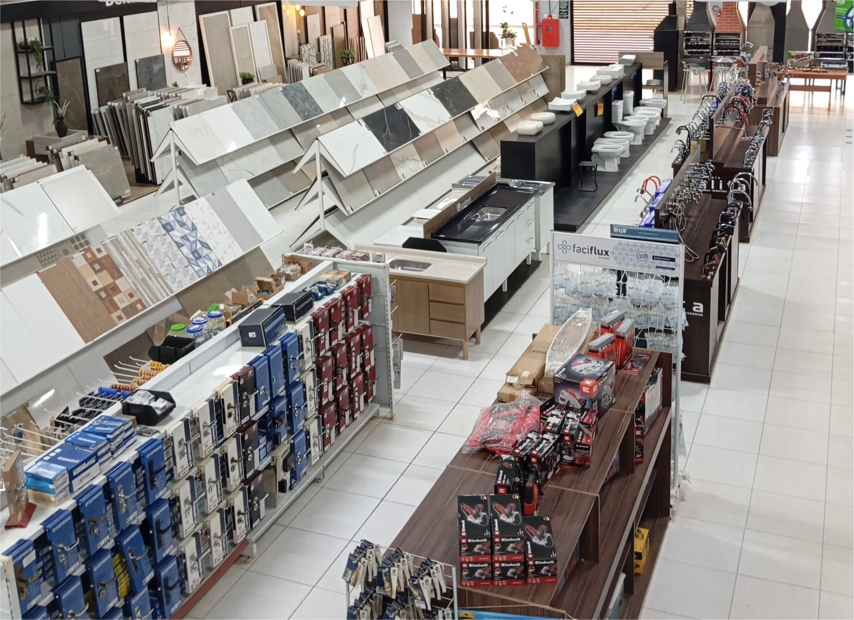 O Telhadão Materiais para Construção há 25 anos é líder no mercado de madeiras na região. Oferece uma linha completa de materiais para construção desde a base até o acabamento. Ocupando uma área total de 4.000 metros quadrados, conta com uma ampla estrutura de atendimento.